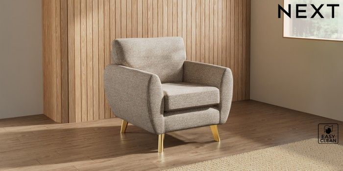 7.3.1 Buy Wilson Armchair Chunky Boucle Easy Clean Mid Natural Metal Tapered - Gold from the Laura Ashley online shop
