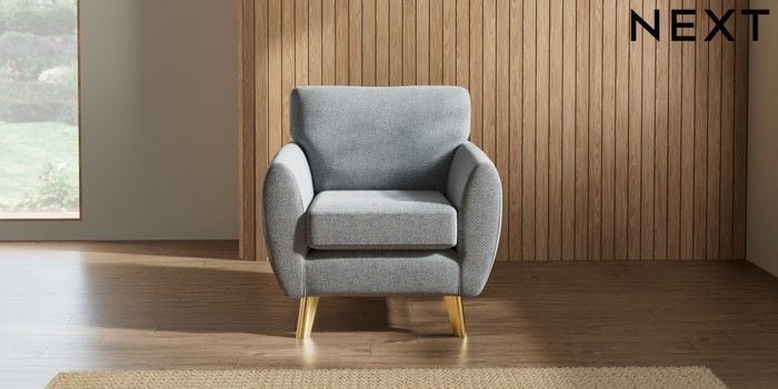 7.3.1 Buy Wilson Armchair Chunky Marl Mid Grey Metal Tapered - Gold from the Laura Ashley online shop
