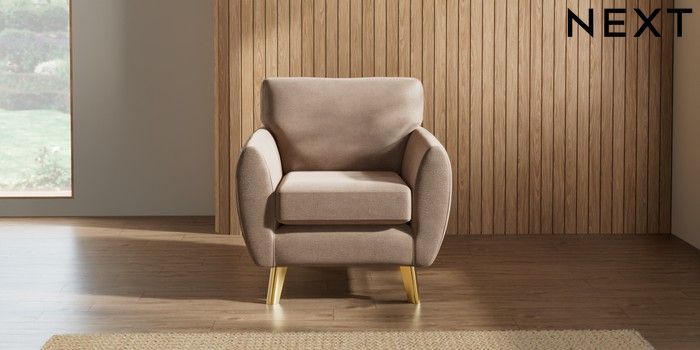 7.3.1 Buy Wilson Armchair Luxe Chenille Mid Natural Metal Tapered - Gold from the Laura Ashley online shop