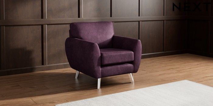 7.3.1 Buy Wilson Armchair Plush Chenille Dark Plum Purple Metal Tapered - Chrome from the Laura Ashley online shop