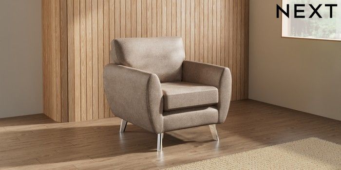 7.3.1 Buy Wilson Armchair Plush Chenille Mid Natural Metal Tapered - Chrome from the Laura Ashley online shop