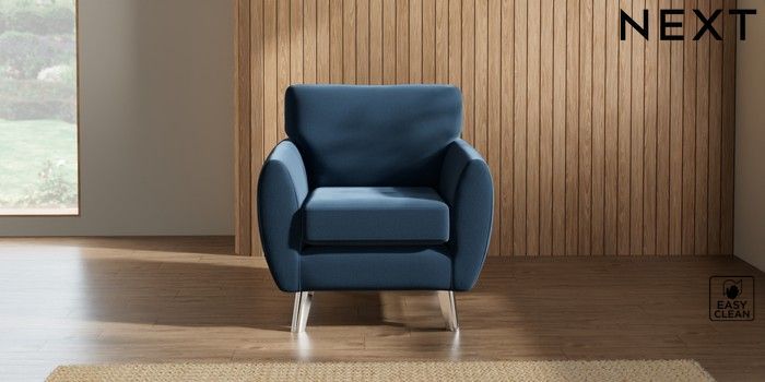 7.3.1 Buy Wilson Armchair Plush Velvet Easy Clean Airforce Blue Metal Tapered - Chrome from the Laura Ashley online shop