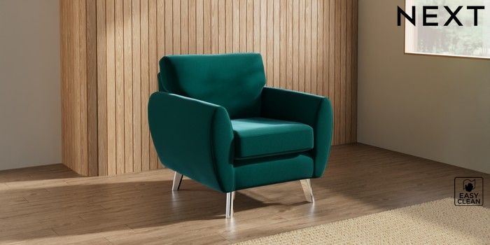 7.3.1 Buy Wilson Armchair Plush Velvet Easy Clean Juniper Green Metal Tapered - Chrome from the Laura Ashley online shop