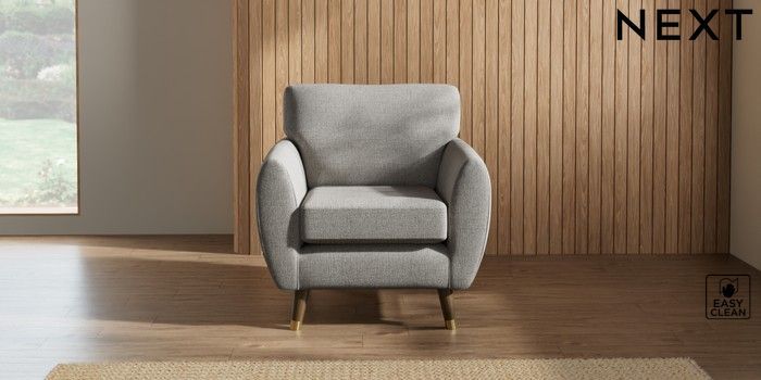 7.3.1 Buy Wilson Armchair Woven Chenille Easy Clean Light Grey Low Retro Tapered Metal Cap - Mid from the Laura Ashley online shop