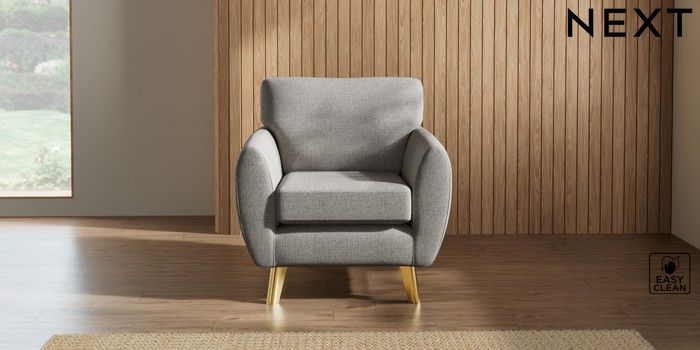 7.3.1 Buy Wilson Armchair Woven Chenille Easy Clean Light Grey Metal Tapered - Gold from the Laura Ashley online shop