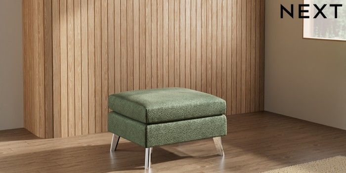 7.3.1 Buy Wilson Footstool Boucle Chenille Dark Moss Green Metal Tapered - Chrome from the Laura Ashley online shop