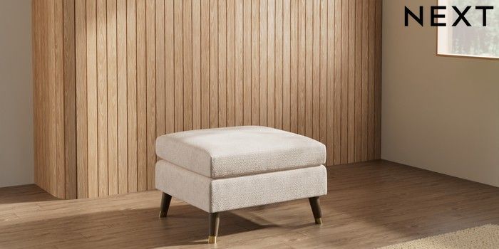 7.3.1 Buy Wilson Footstool Boucle Chenille Oyster Low Retro Tapered Metal Cap - Mid from the Laura Ashley online shop