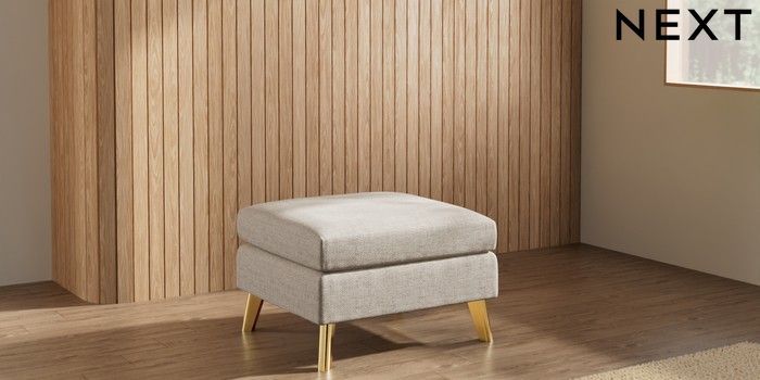 7.3.1 Buy Wilson Footstool Chunky Weave Mid Natural Metal Tapered - Gold from the Laura Ashley online shop