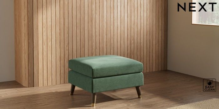 7.3.1 Buy Wilson Footstool Fine Chenille Easy Clean Mid Khaki Green Low Retro Tapered Metal Cap - Mid from the Laura Ashley online shop