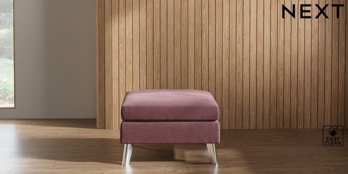7.3.1 Buy Wilson Footstool Fine Chenille Easy Clean Mid Mulberry Purple Metal Tapered - Chrome from the Laura Ashley online shop