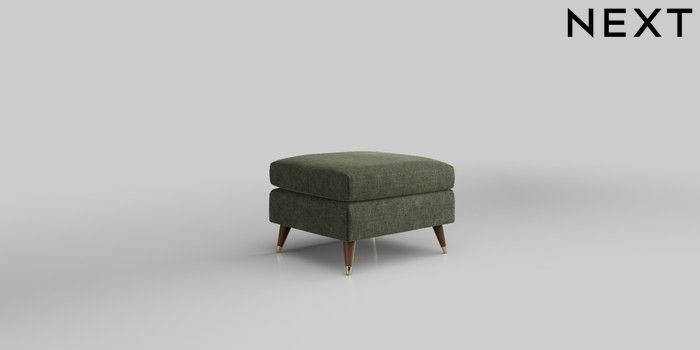 6.12.1 Buy Wilson Footstool Luxe Chenille Mid Green Low Retro Tapered Metal Cap - Mid from the Laura Ashley online shop Click here to use our website with more accessibility support, for example screen readers