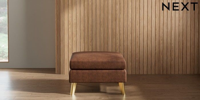 7.2.10 Buy Wilson Footstool Monza Faux Leather Easy Clean Chestnut Brown Metal Tapered - Gold from the Laura Ashley online shop Click here to use our website with more accessibility support, for example screen readers