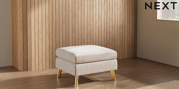 7.3.1 Buy Wilson Footstool Multi Weave Mid Natural Metal Tapered - Gold from the Laura Ashley online shop