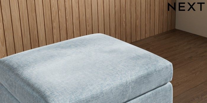 7.3.1 Buy Wilson Footstool Plush Chenille Light Blue Low Retro Tapered Metal Cap - Mid from the Laura Ashley online shop