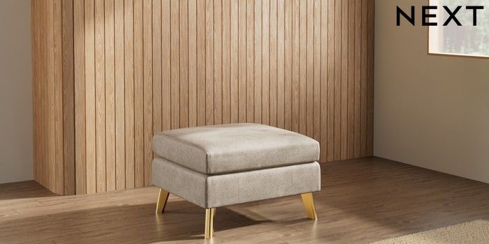 7.3.1 Buy Wilson Footstool Plush Chenille Light Natural Metal Tapered - Gold from the Laura Ashley online shop