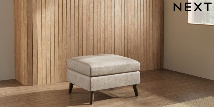 7.3.1 Buy Wilson Footstool Plush Chenille Light Natural Retro Tapered - Mid from the Laura Ashley online shop
