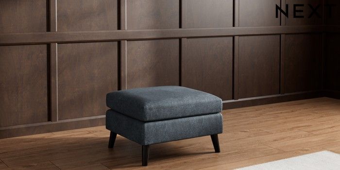 7.3.1 Buy Wilson Footstool Plush Chenille Slate Blue Retro Tapered - Dark from the Laura Ashley online shop