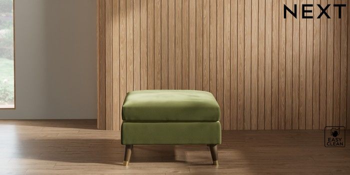 7.3.1 Buy Wilson Footstool Plush Velvet Easy Clean Mid Olive Green Low Retro Tapered Metal Cap - Mid from the Laura Ashley online shop