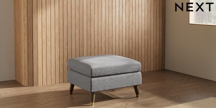7.3.1 Buy Wilson Footstool Studio Chenille Mid Grey Low Retro Tapered Metal Cap - Mid from the Laura Ashley online shop