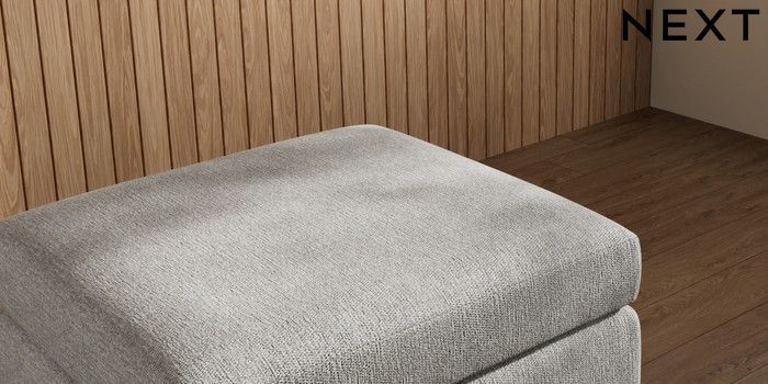7.3.1 Buy Wilson Footstool Tweedy Chenille Mid Grey Metal Tapered - Gold from the Laura Ashley online shop