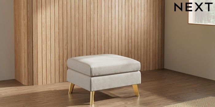 7.3.1 Buy Wilson Footstool Tweedy Chenille Oyster Metal Tapered - Gold from the Laura Ashley online shop