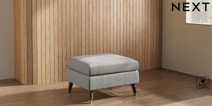 7.3.1 Buy Wilson Footstool Woven Chenille Easy Clean Light Grey Low Retro Tapered Metal Cap - Mid from the Laura Ashley online shop