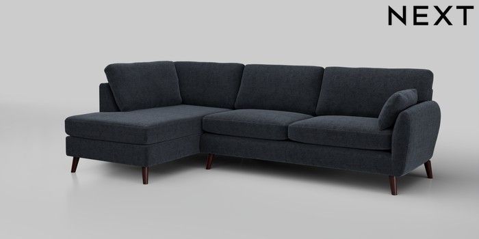 6.12.1 Buy Wilson Large Corner Chaise - Left Hand Boucle Chenille Dark Slate Blue Retro Tapered - Dark Brown from the Laura Ashley online shop Click here to use our website with more accessibility support, for example screen readers