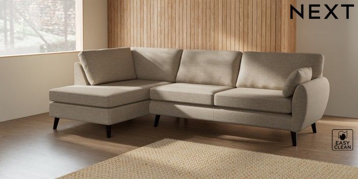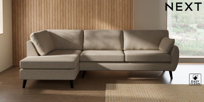 7.3.1 Buy Wilson Large Corner Chaise - Left Hand Boucle Weave Easy Clean Dark Natural Retro Tapered - Dark from the Laura Ashley online shop