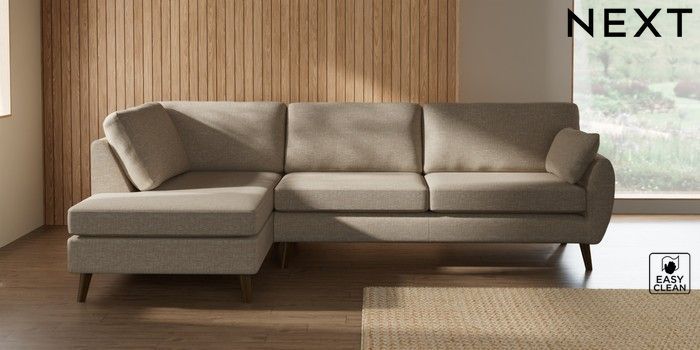 7.3.1 Buy Wilson Large Corner Chaise - Left Hand Boucle Weave Easy Clean Dark Natural Retro Tapered - Mid from the Laura Ashley online shop