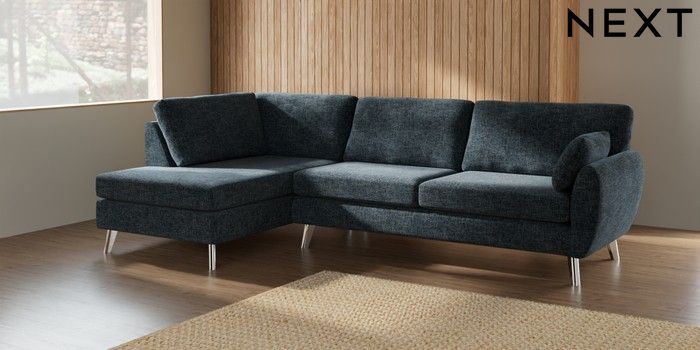 7.3.1 Buy Wilson Large Corner Chaise - Left Hand Chunky Chenille Dark Navy Blue Metal Tapered - Chrome from the Laura Ashley online shop