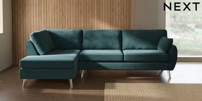 7.3.1 Buy Wilson Large Corner Chaise - Left Hand Chunky Chenille Mid Teal Green Metal Tapered - Chrome from the Laura Ashley online shop