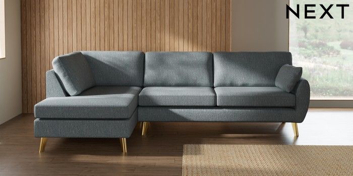 7.3.1 Buy Wilson Large Corner Chaise - Left Hand Chunky Weave Mid Blue Metal Tapered - Gold from the Laura Ashley online shop