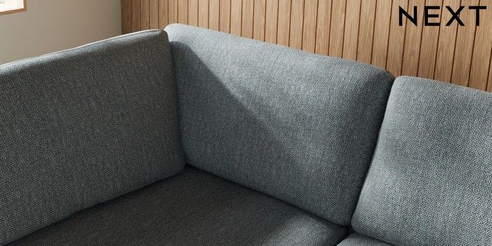 7.3.1 Buy Wilson Large Corner Chaise - Left Hand Chunky Weave Mid Blue Retro Tapered - Light from the Laura Ashley online shop