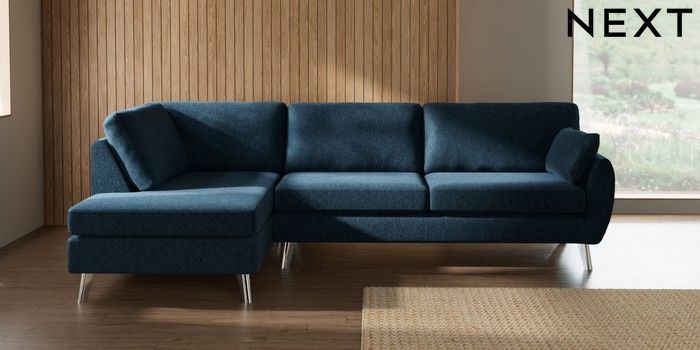 7.3.1 Buy Wilson Large Corner Chaise - Left Hand Cotswold Chenille Dark Blue Metal Tapered - Chrome from the Laura Ashley online shop