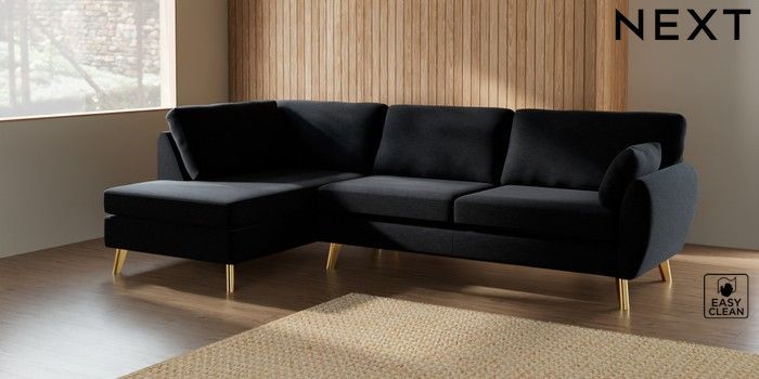 7.3.1 Buy Wilson Large Corner Chaise - Left Hand Fine Chenille Easy Clean Black Metal Tapered - Gold from the Laura Ashley online shop