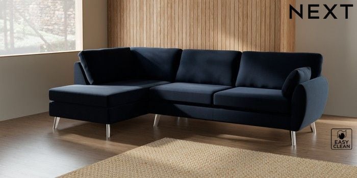 7.3.1 Buy Wilson Large Corner Chaise - Left Hand Fine Chenille Easy Clean Dark Navy Blue Metal Tapered - Chrome from the Laura Ashley online shop