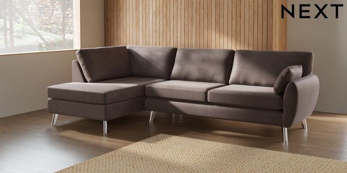7.3.1 Buy Wilson Large Corner Chaise - Left Hand Luxe Chenille Mink Brown Metal Tapered - Chrome from the Laura Ashley online shop