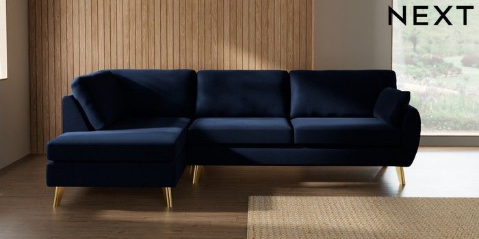 7.3.1 Buy Wilson Large Corner Chaise - Left Hand Luxe Chenille Navy Blue Metal Tapered - Gold from the Laura Ashley online shop