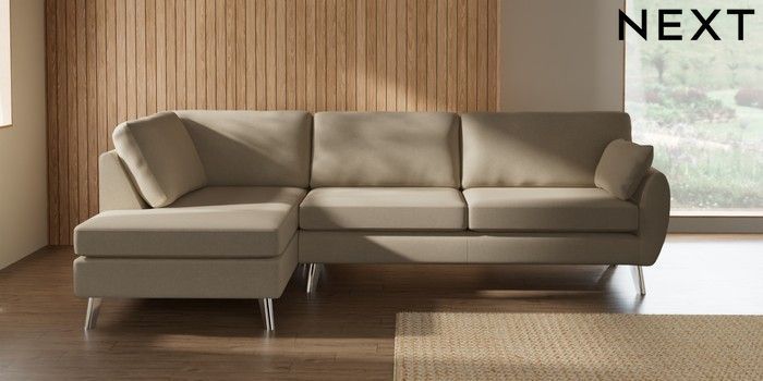 7.3.1 Buy Wilson Large Corner Chaise - Left Hand Natural Mix Light Natural Metal Tapered - Chrome from the Laura Ashley online shop