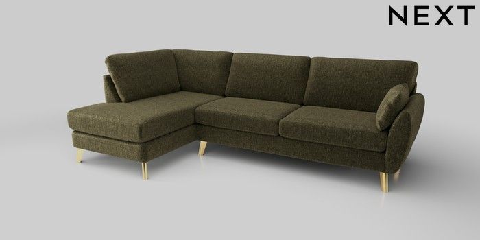6.12.1 Buy Wilson Large Corner Chaise - Left Hand Plush Chenille Moss Green Metal Tapered - Gold from the Laura Ashley online shop Click here to use our website with more accessibility support, for example screen readers