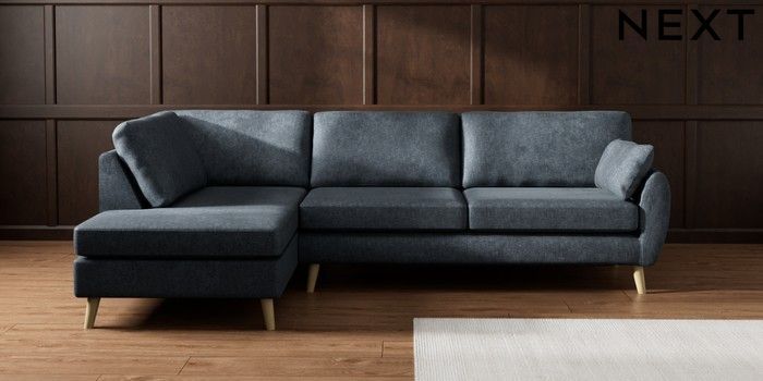 7.3.1 Buy Wilson Large Corner Chaise - Left Hand Plush Chenille Slate Blue Retro Tapered - Light from the Laura Ashley online shop
