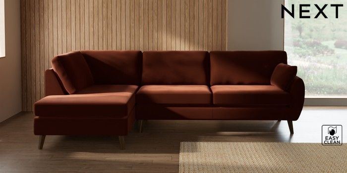 7.3.1 Buy Wilson Large Corner Chaise - Left Hand Plush Velvet Easy Clean Ginger Orange Retro Tapered - Mid from the Laura Ashley online shop