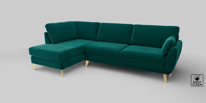 6.12.1 Buy Wilson Large Corner Chaise - Left Hand Plush Velvet Easy Clean Juniper Green Metal Tapered - Gold from the Laura Ashley online shop Click here to use our website with more accessibility support, for example screen readers