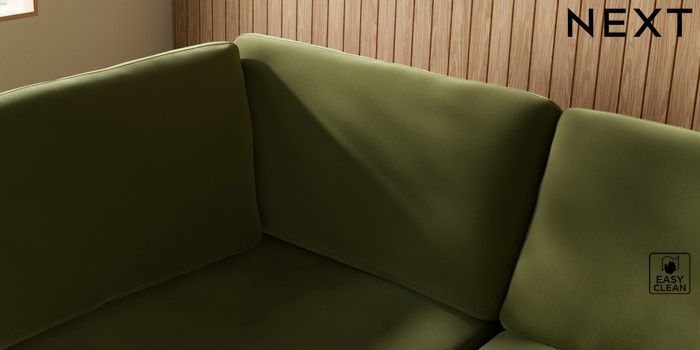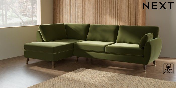 7.3.1 Buy Wilson Large Corner Chaise - Left Hand Plush Velvet Easy Clean Mid Olive Green Low Retro Tapered Metal Cap - Mid from the Laura Ashley online shop