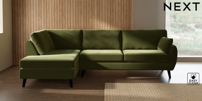 7.3.1 Buy Wilson Large Corner Chaise - Left Hand Plush Velvet Easy Clean Mid Olive Green Retro Tapered - Dark from the Laura Ashley online shop