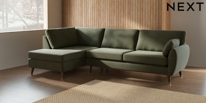 7.3.1 Buy Wilson Large Corner Chaise - Left Hand Ripple Chenille Mid Moss Green Low Retro Tapered Metal Cap - Mid from the Laura Ashley online shop