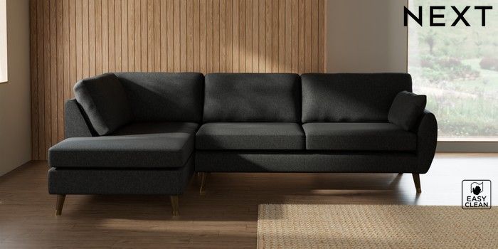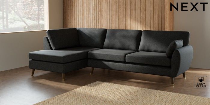 7.3.1 Buy Wilson Large Corner Chaise - Left Hand Tweedy Blend Easy Clean Charcoal Grey Low Retro Tapered Metal Cap - Mid from the Laura Ashley online shop