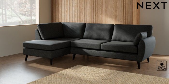 7.3.1 Buy Wilson Large Corner Chaise - Left Hand Tweedy Blend Easy Clean Charcoal Grey Retro Tapered - Dark from the Laura Ashley online shop