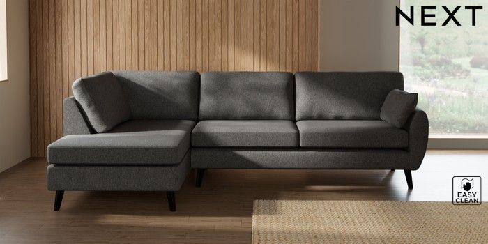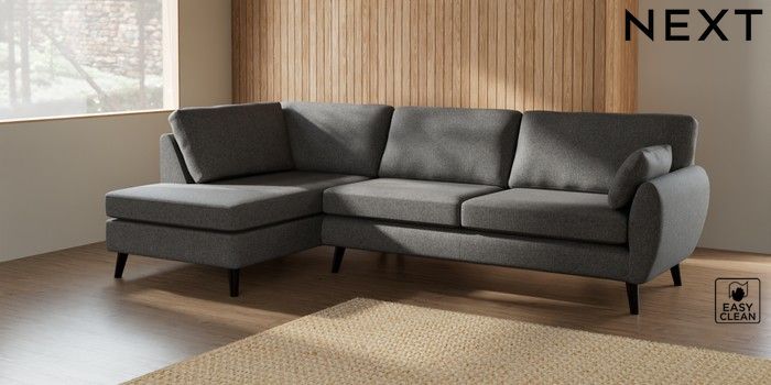 7.3.1 Buy Wilson Large Corner Chaise - Left Hand Tweedy Blend Easy Clean Dark Grey Retro Tapered - Dark from the Laura Ashley online shop
