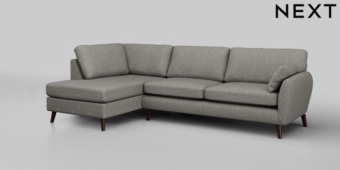 6.12.1 Buy Wilson Large Corner Chaise - Left Hand Tweedy Chenille Mid Grey Retro Tapered - Dark Brown from the Laura Ashley online shop Click here to use our website with more accessibility support, for example screen readers